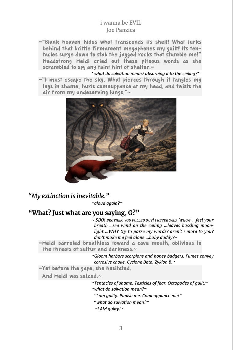 i wanna be EVIL follows up my first novel: Saint Gredible and Her Fat Dad’s Mass.